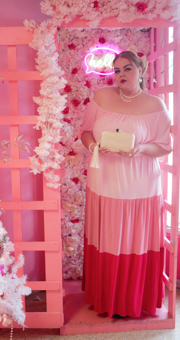 Pink Off Shoulder Ruffle Maxi Dress