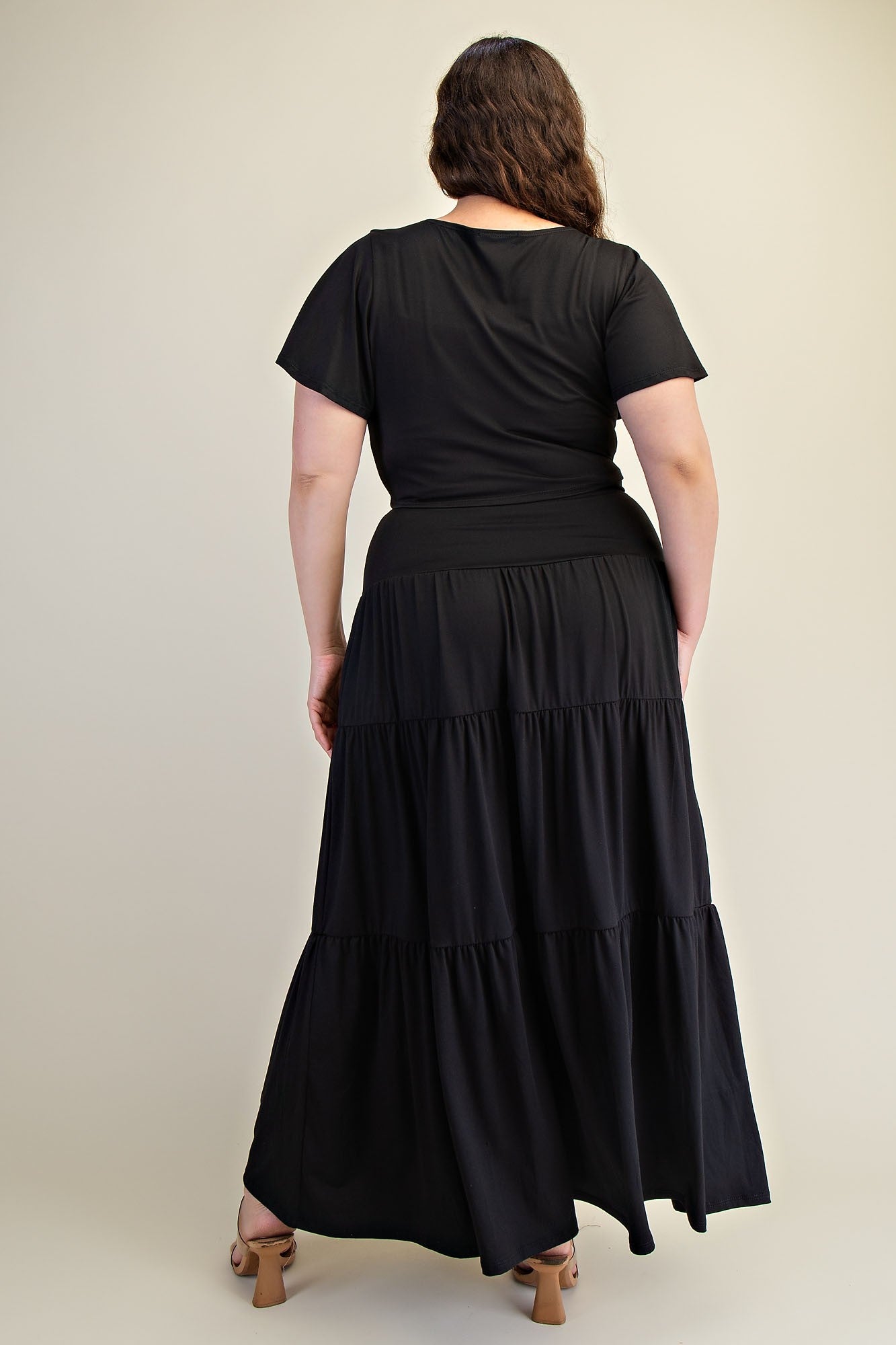 Su falda escalonada crea un efecto visual alargador ideal para eventos, cenas o looks elegantes sin esfuerzo. Tela ligera y cómoda para uso prolongado.