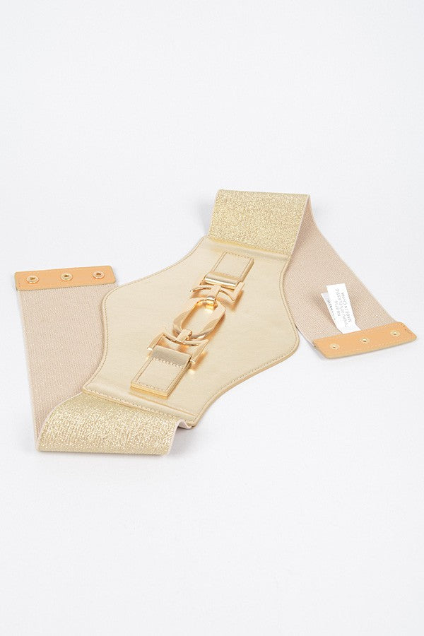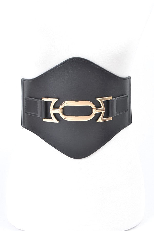 El Cinturón Golden Link Corset destaca por su hebilla geométrica dorada que combina fuerza y sofisticación. Su diseño ancho realza la figura, aportando estructura y elegancia. Ideal para vestidos, blazers o tops de corte fluido.