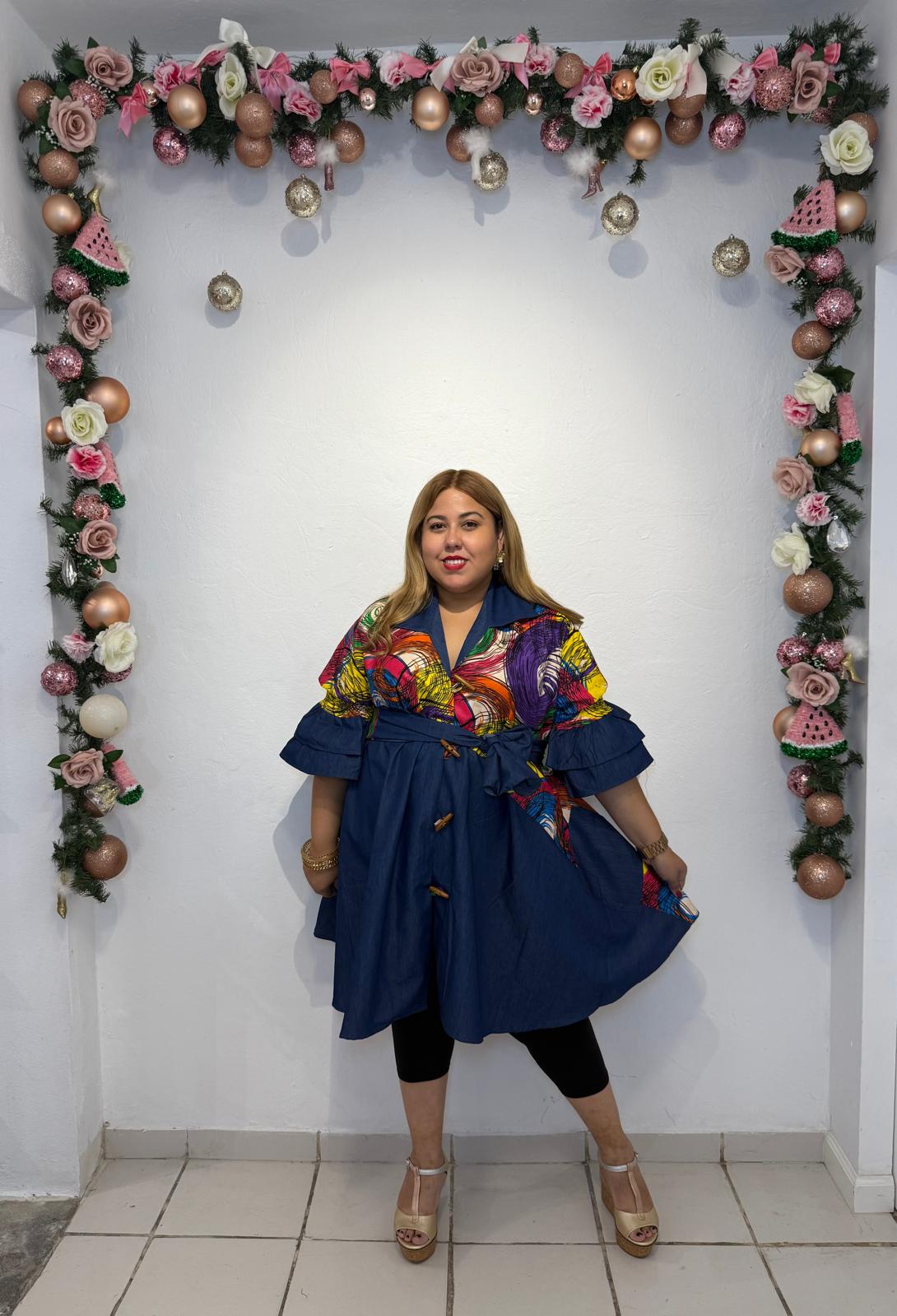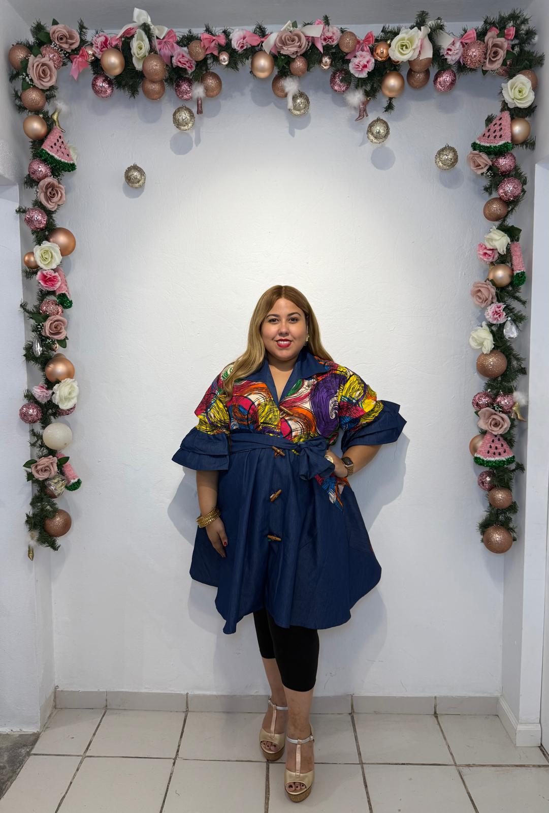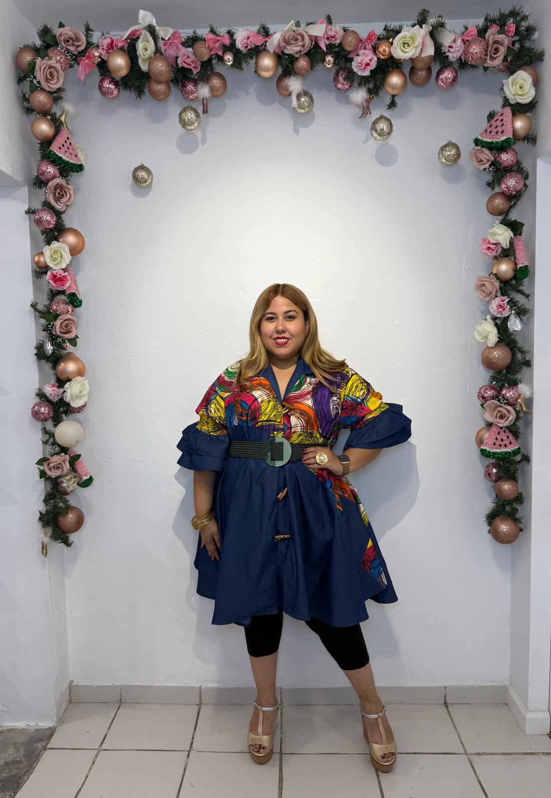 Dale vida a tu outfit con el Blusón Étnico Denim Art, una pieza oversize de inspiración boho y detalles étnicos que celebra la autenticidad de tu estilo. Este blusón tipo túnica combina un cuerpo en tela de mezclilla ligera (no stretch) con estampados artísticos multicolores en la parte superior que aportan un toque vibrante y único.