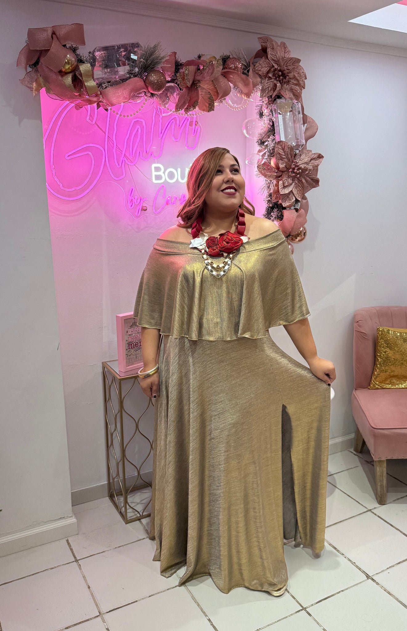 Disponible en los colores Plata, Dorado, Bronze y Negro en las tallas L hasta 3XL y confeccionable en tallas S hasta 5XL, este diseño celebra la moda inclusiva con sofisticación.