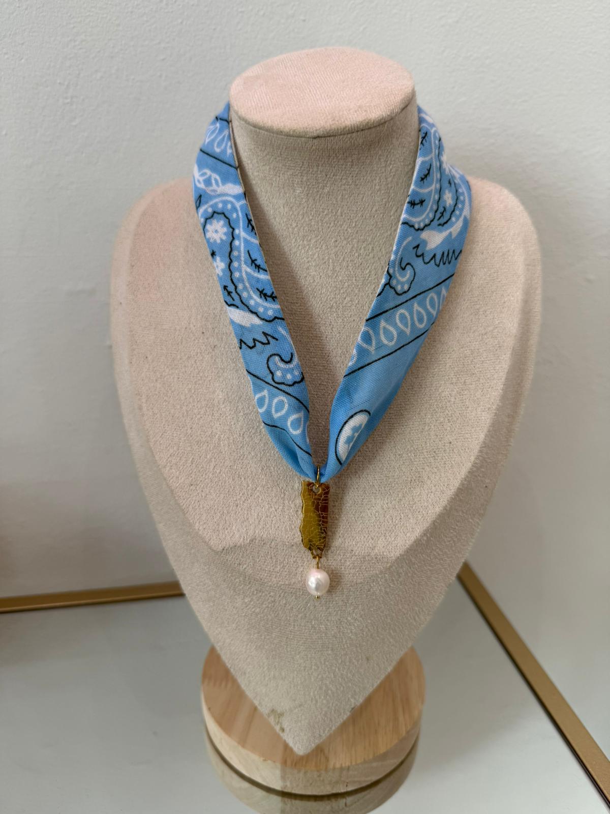 Atrévete a destacar con nuestros Collares Bandana Encanto Tropical, una pieza exclusiva hecha a mano por Carmen Acevedo para Glam By Carmen Acevedo. Cada collar combina el estilo bohemio del Caribe con un toque chic y contemporáneo, confeccionado con pañuelos coloridos tipo bandana, dijes únicos bañados en gold plated o stainless steel, detalles en perlas de agua dulce y piedras semipreciosas que capturan la esencia tropical de Puerto Rico.