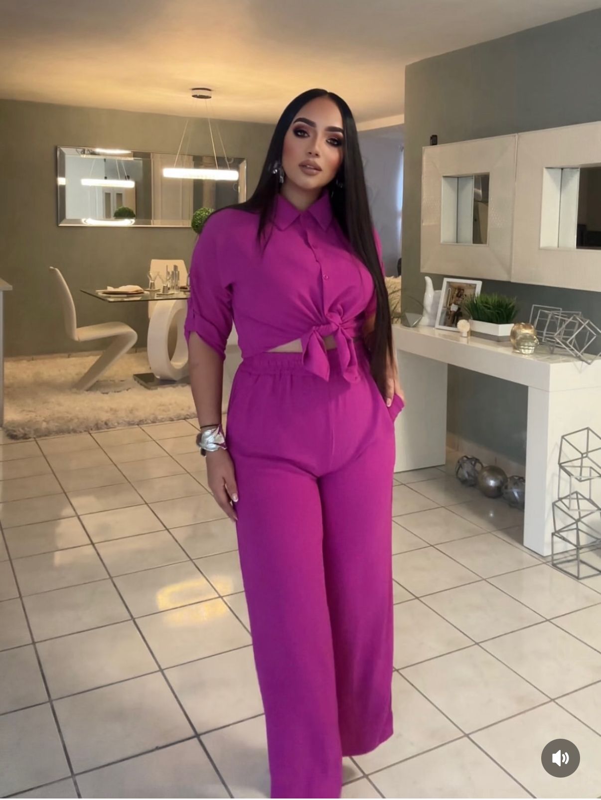 El pantalón brinda ajuste cómodo y estilizador, mientras el top de corte amplio aporta elegancia relajada. Ideal para eventos, cenas o outfits sofisticados con comodidad.