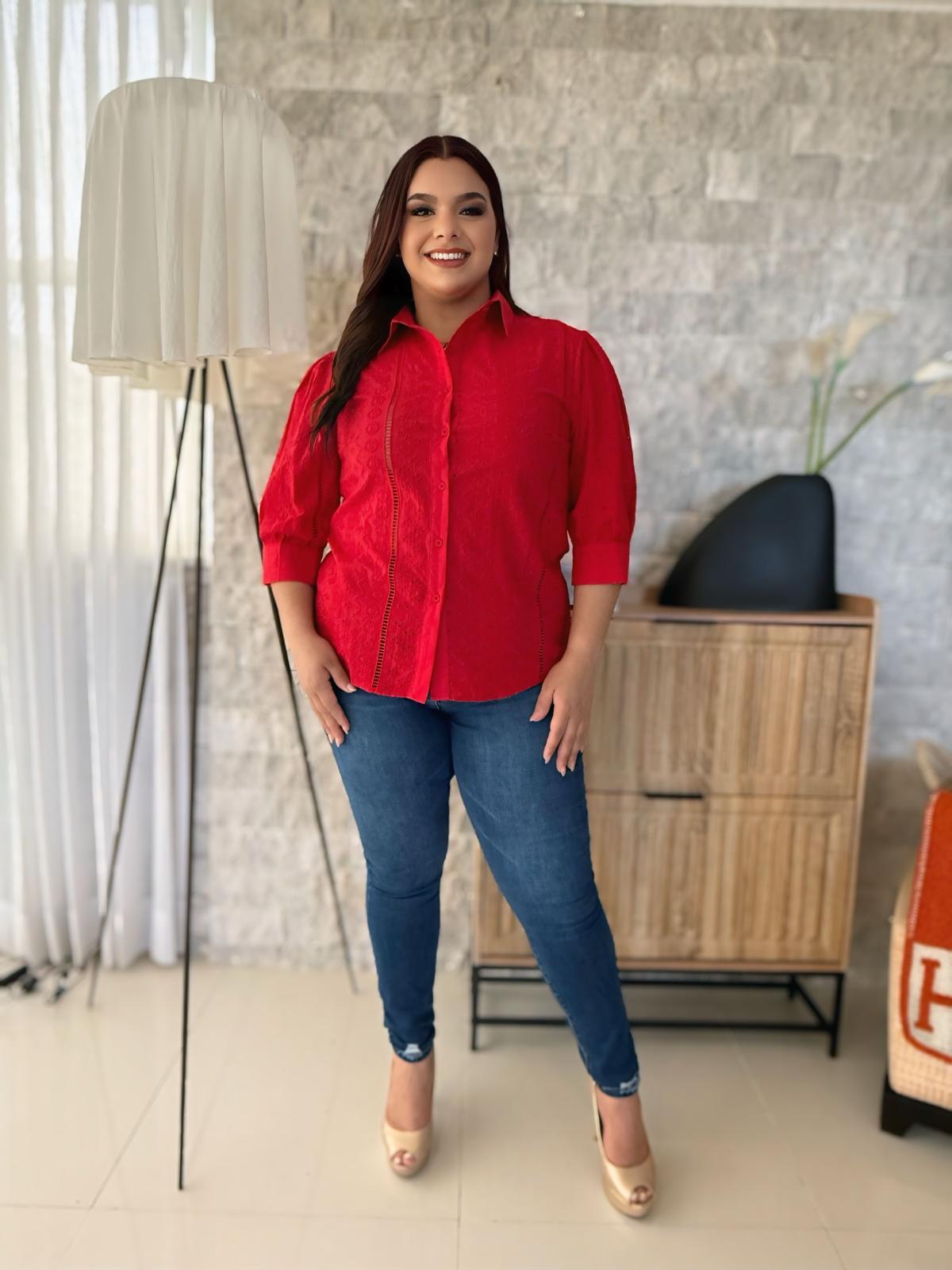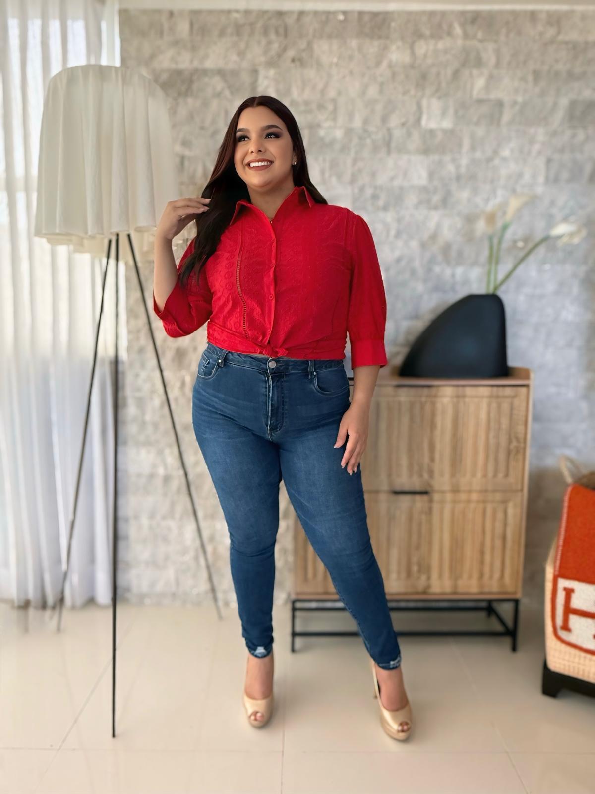 Blusa estructurada de corte moderno que estiliza la figura. Diseño elegante ideal para oficina o eventos.