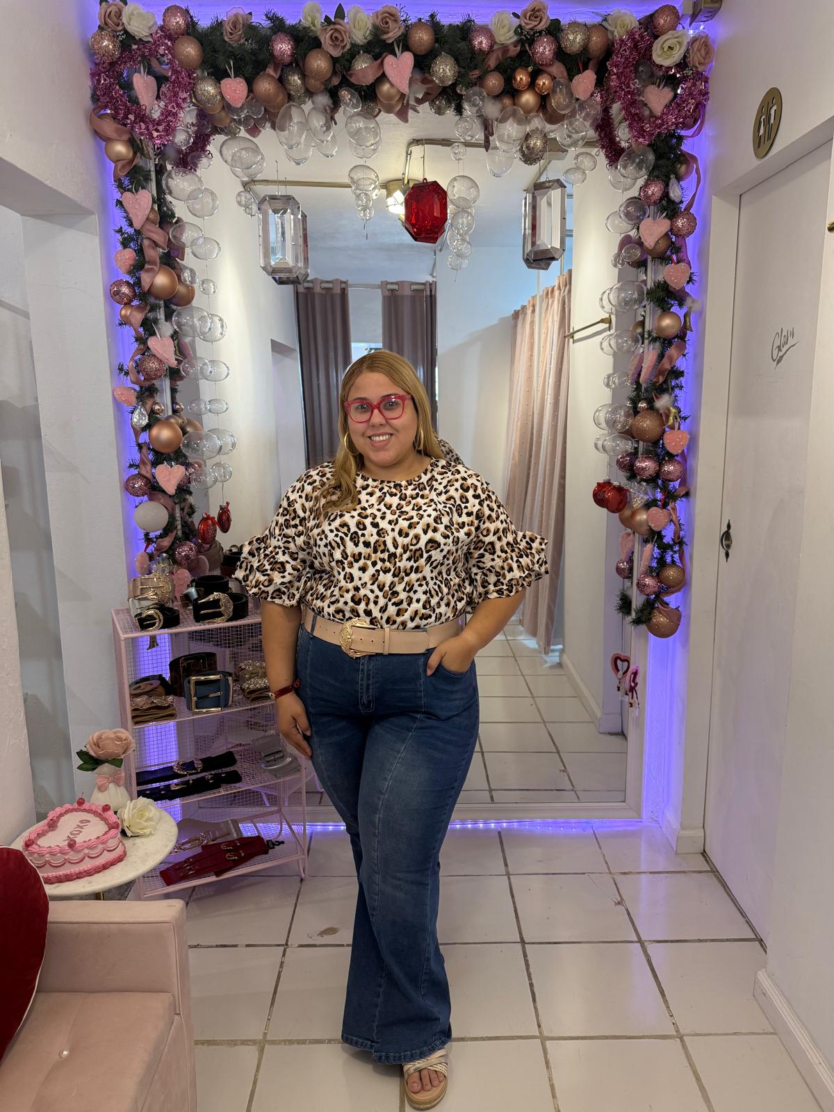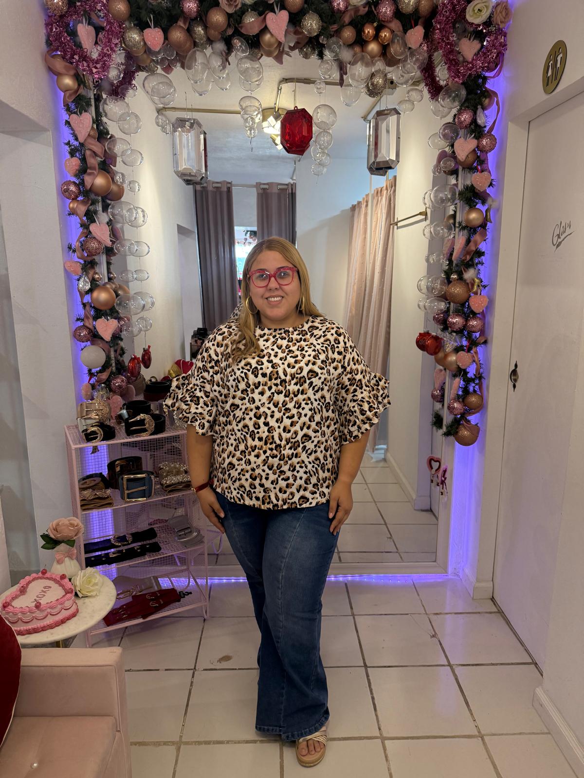 El diseño presenta un print leopardo clásico en tonos neutros, perfecto para combinar con denim, pantalones negros o faldas para crear looks casuales, chic o de noche. Las mangas con vuelos añaden movimiento y un toque femenino sofisticado que eleva el outfit al instante.