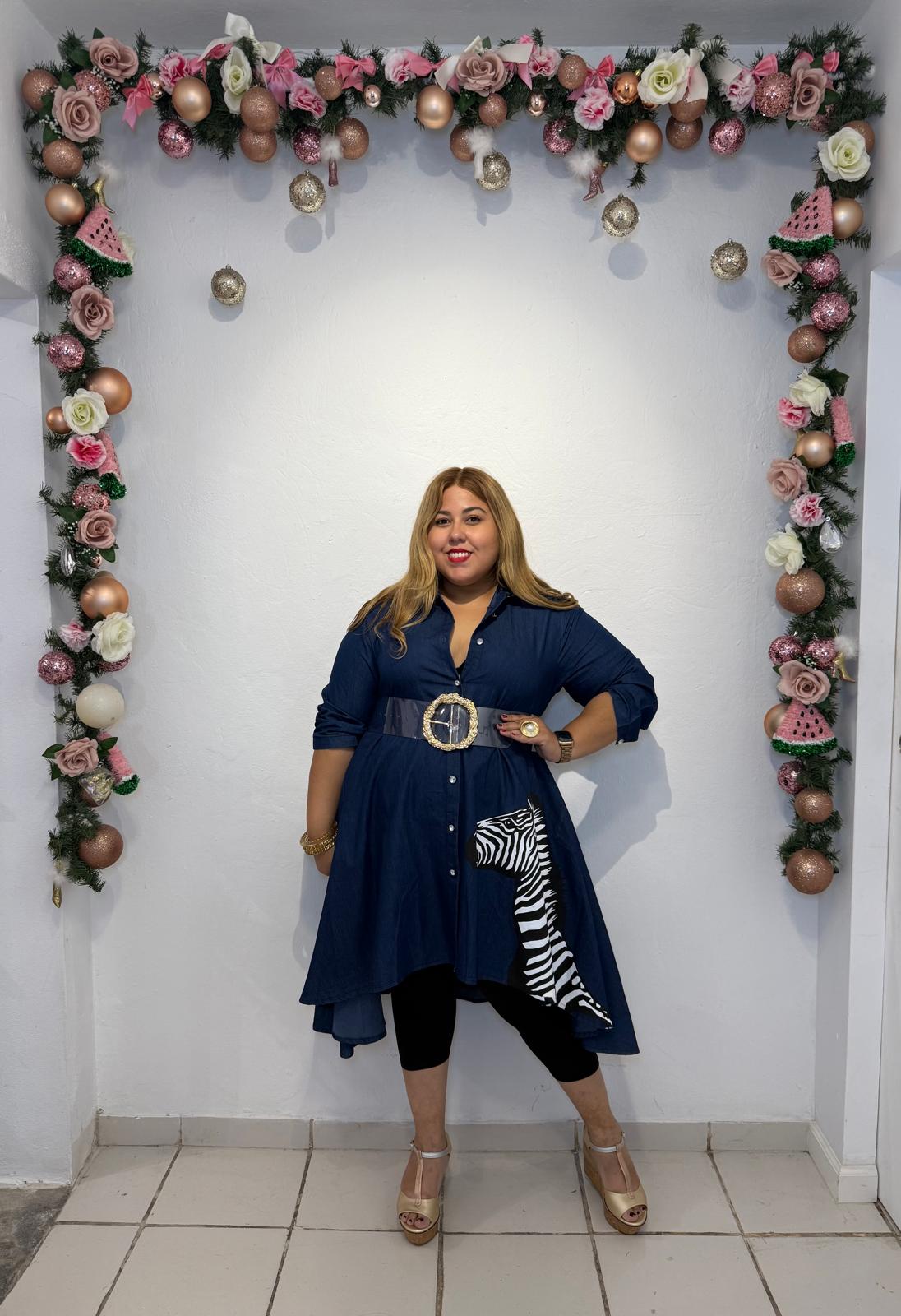 Atrévete a lucir un look moderno y lleno de personalidad con nuestro Zebra Denim Tunic – Oversize, un blusón en mahón azul oscuro con corte asimétrico que combina comodidad, estilo y un toque artístico. Su diseño oversize tipo camisa larga es ideal para mujeres desde talla L hasta 5XL, brindando caída fluida y una silueta favorecedora sin comprometer el estilo.